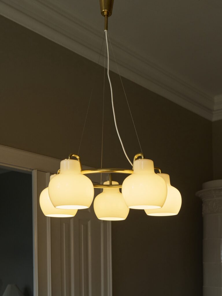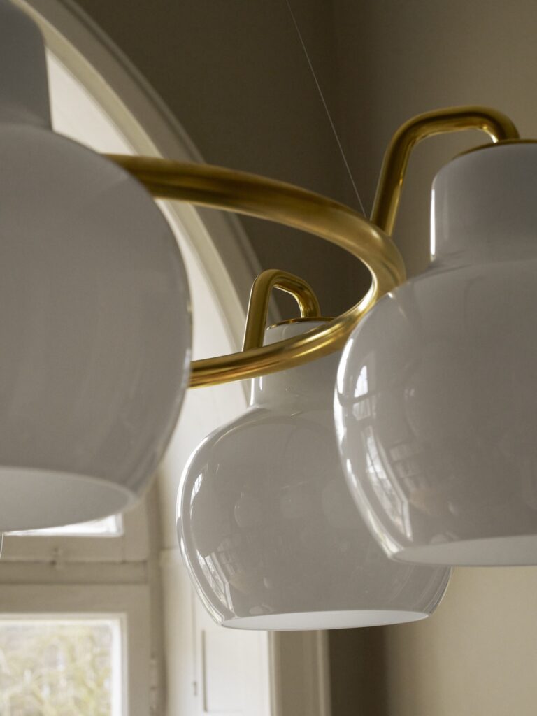 その後デザインだけにとどまっていたVLリングクラウンシリーズは、ヴィルヘルム・ラウリッツェンの事務所に務めていた建築家のフィン・ユールによって、1947年にコペンハーゲンの磁器メーカーのインテリアデザインにVLリングクラウンが採用された経緯があるそうですが、時は流れ2019年にラウリッツェンの図面をそのままにVLリングクラウンシリーズが改めてルイスポールセンのコレクションとして登場することになりました。