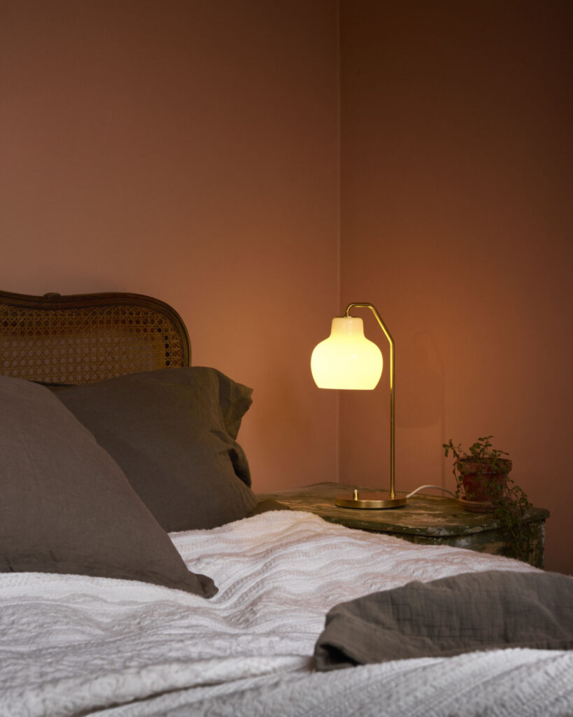 基本的にシェードのサイズは共通(Φ19cm)になりますが、今回登場するテーブルランプのみ一回り小さいΦ15cm。見た目の美しさと小回りのよさのバランスがいい仕上がりです。ベッドサイドなどに置いても邪魔にならず、柔らかい乳白の光を届けてくれます。