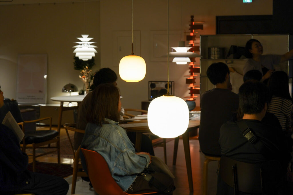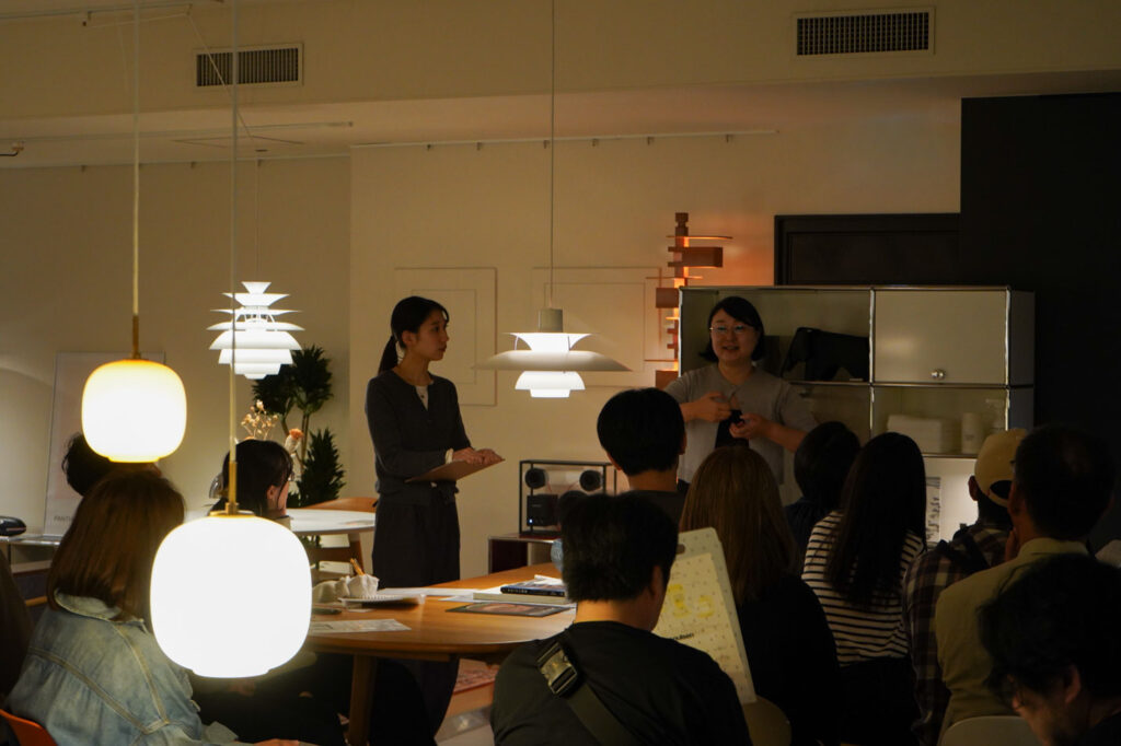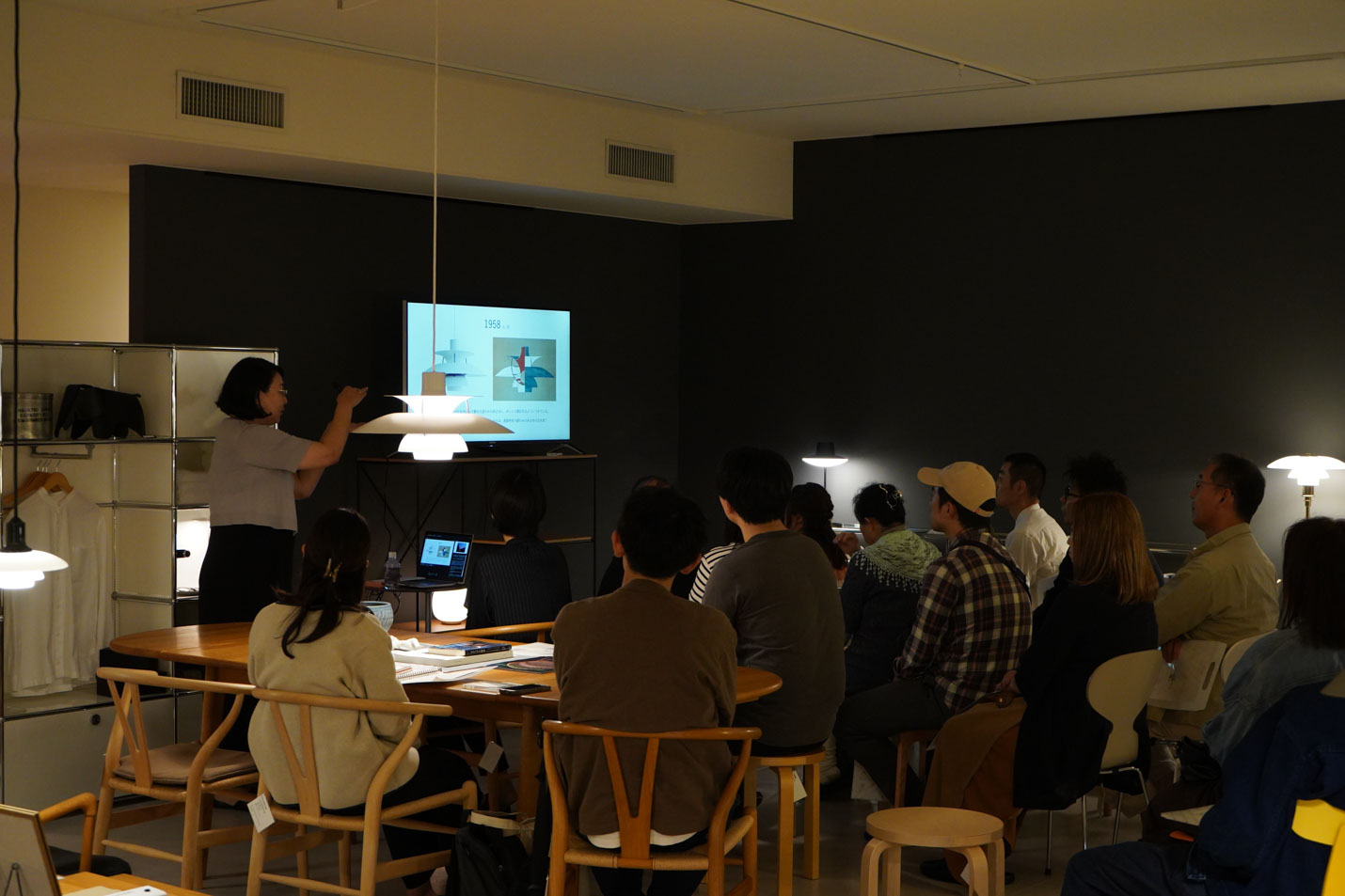今回は3日間の開催でしたが、メインのイベントがルイスポールセンのトークイベント。ルイスポールセンジャパンから中村さまをお招きして、ルイスポールセンの歴史や照明の選び方・器具による光の違いなど盛りだくさんの内容をお届けしました。