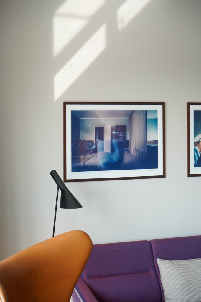 壁面にはヤコブセンスイートの606号室の写真が飾られていて、当時の空気感を存分に味わうことができます。