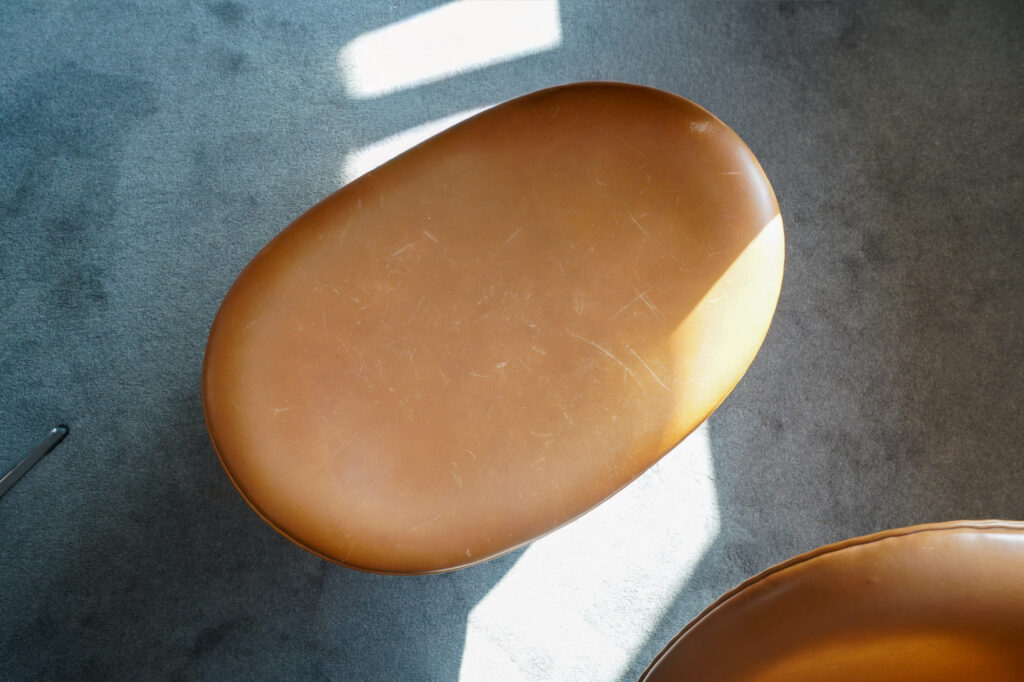 このスワンチェアとエッグチェアも、ちょっとした対比の意図が隠されていて、スワンはオープンな使い方、エッグは空間の中でも程よくパーソナルエリアを確保できるようクローズなデザインに仕上がっています。