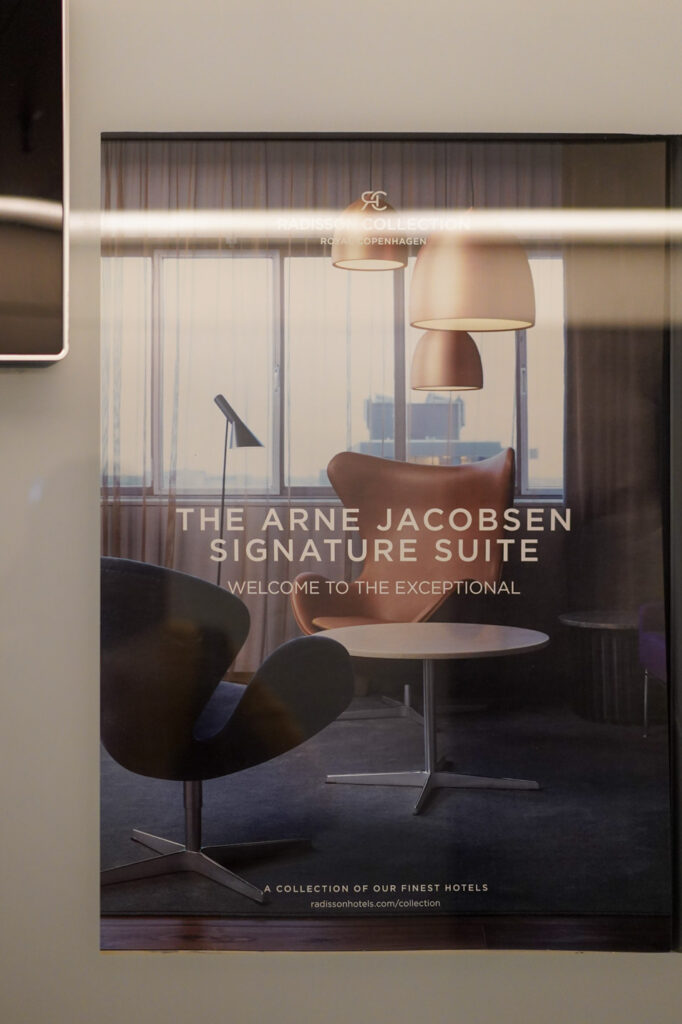 実はSASロイヤルホテルにはこの606号室以外に、シグネチャースイートルームが用意されています。シグネチャースイートは、アルネ・ヤコブセン、ポール・ケアホルム、セシリエ・マンツの3人のデザインが取り入れられたスイート。