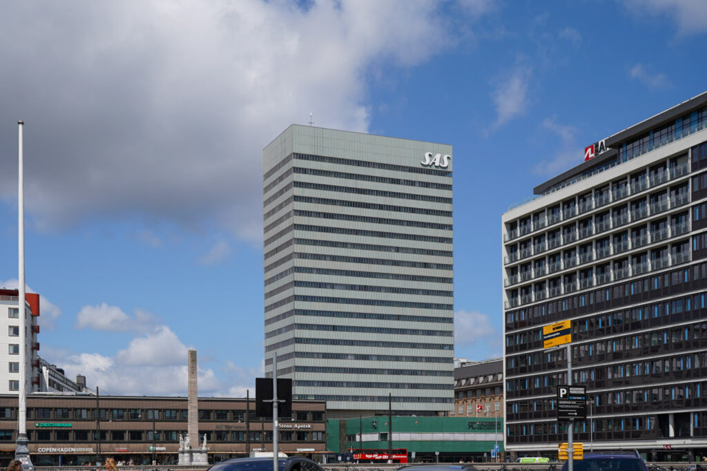 当時のデンマークとしては珍しい高層ビルで(当時の北欧一の高さ!)、スカンジナビア航空のフラッグシップホテルとして誕生。ヤコブセンの最高傑作の一つとしてだけでなく、モダニズム建築の代表作としても知られています。SASはスカンジナビア航空”Scandinavian Airlines System”の頭文字からきています。