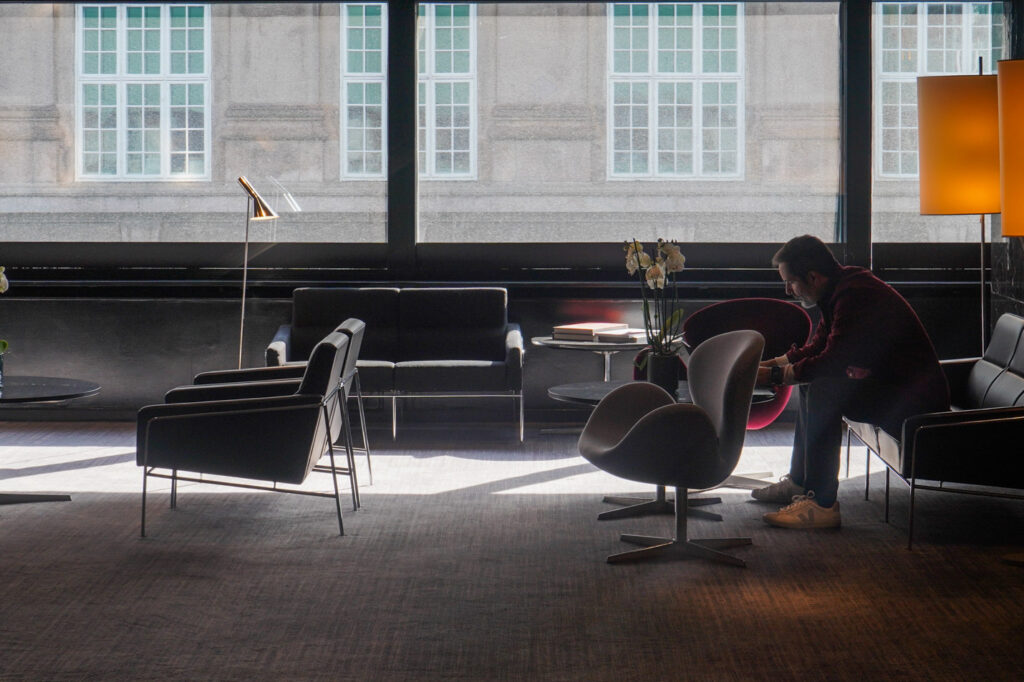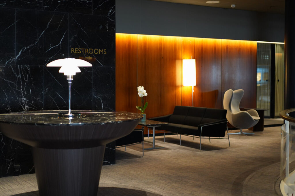 SASロイヤルホテルは当時から全てが残っているわけではありません。2018年にスペース・コペンハーゲンによりリノベーションされています。時代の流れとともに、屋内に設られていたヤコブセンのデザインが姿を減らしつつありましたが、改めてヤコブセンの偉業を現代にもう一度甦らせるべくリノベーションが実現しました。