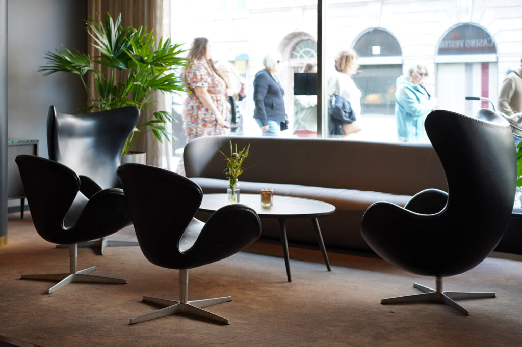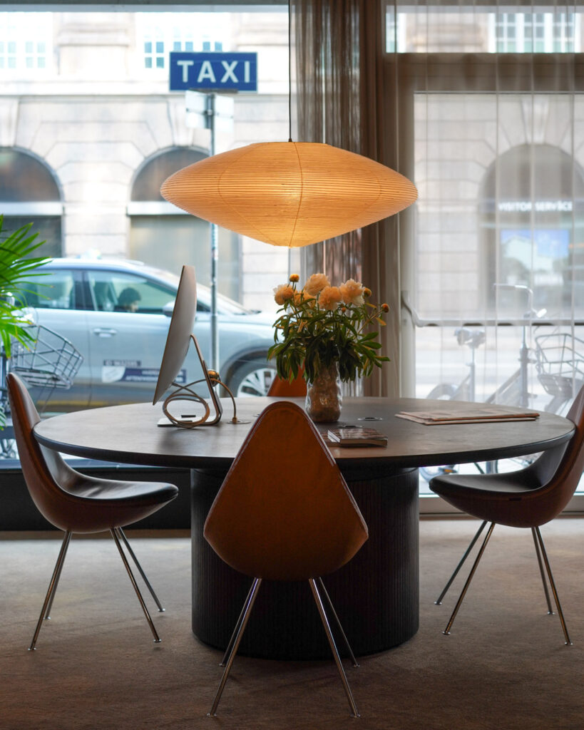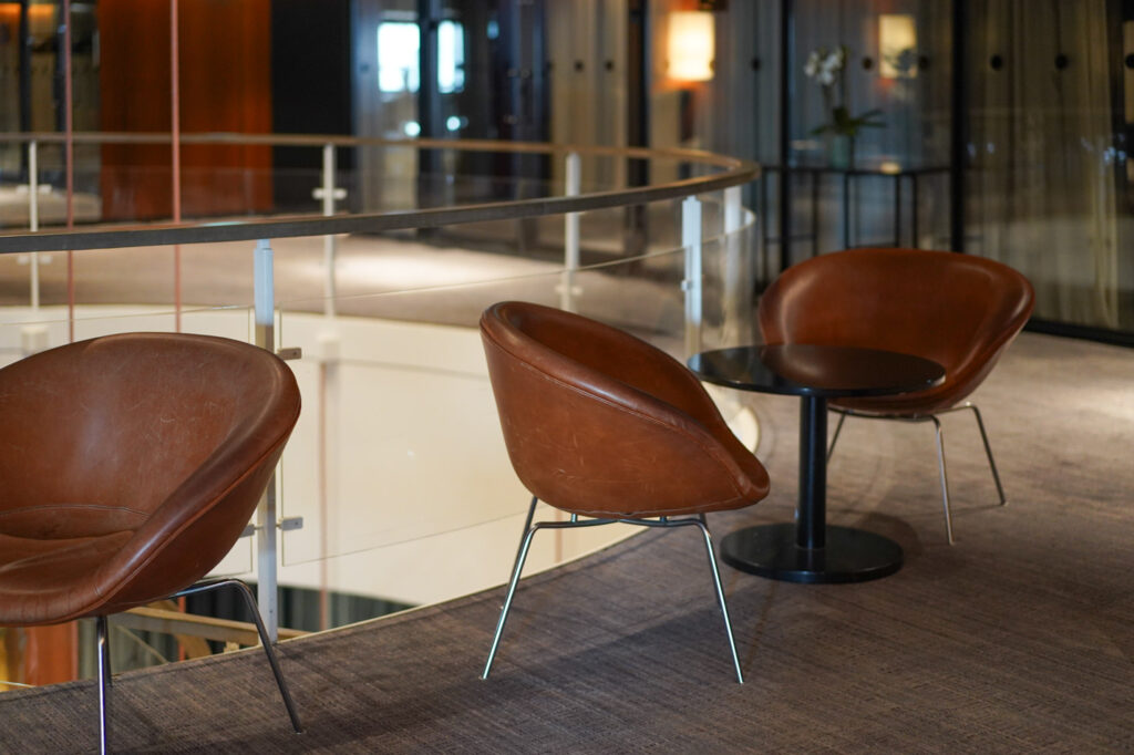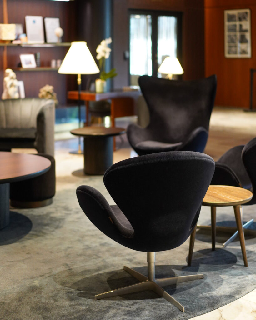 ヤコブセンが目指した”空間としてのデザイン”を、家具単体ではなく空間として体験していただけます。SASロイヤルホテルは、ヤコブセンの思想を最も象徴するプロジェクトの一つです。その空間の一部を、日本で体験できる機会は多くありません。